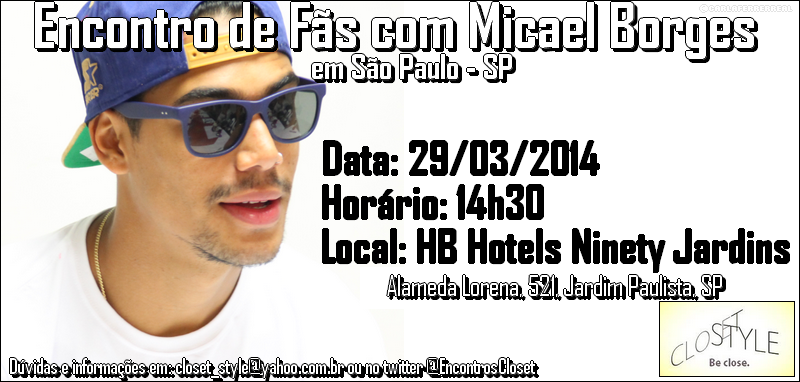 Encontro de fãs com o Mika com direito a foto, autógrafo, bate papo e um pocket em São Paulo dia 29/03 no HB Hotels Ninety Jardins, Alameda Lorena 521, Jardim Paulista, SP.